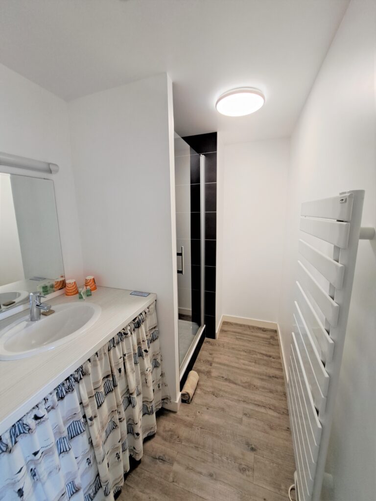 Située au premier étage avec un accès indépendant cette chambre est dotée d’un grand lit double. Elle dispose d’une salle d’eau et de WC privatifs. Elle est dotée de serviettes, d’un seche cheveux et de produits d’accueil. Le wifi est disponible. Le petit déjeuner continental est servi au milieu des livres dans notre café Librairie.